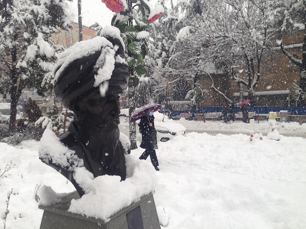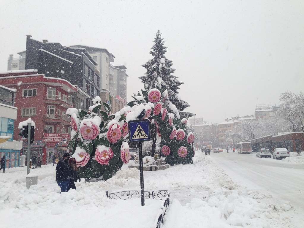 Kara teslim olan Isparta kent merkezinden bir görünüm.