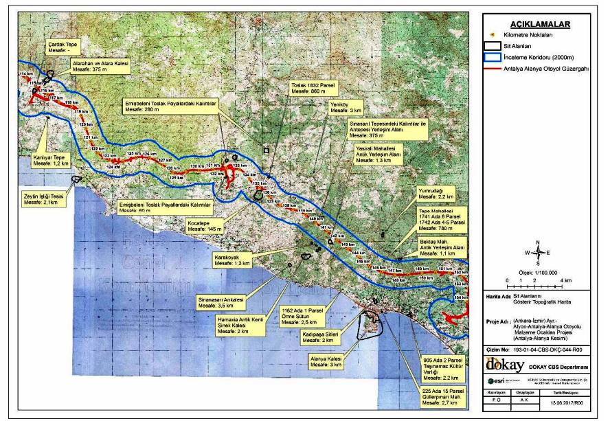 Aspendos antik kentinin bitişiğinde bulunan Köprüçay 1. Derece Doğal Sit Alanı’nın 485 metre uzunluğunda bir viyadükle geçeceği kaydedilen otoyolun etki alanı ve çevresinde ayrıca 88 arkeolojik sit alanı da bulunuyor.