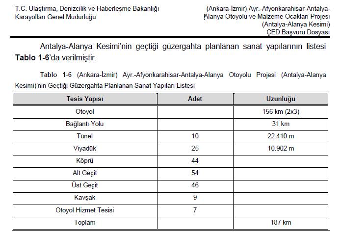 10 TÜNEL, 25 VİYADÜK, 44 KÖPRÜ, 54 ALT GEÇİT, 88 SİT ALANI