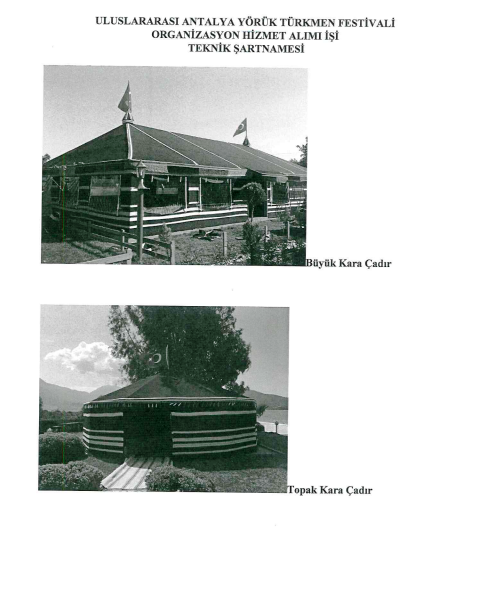 Festival kapsamında kullanılmak üzere 3 otağ çadırı, 11 topak kara çadır, 7 topak keçe çadır, 15 bölmeli kara çadır, 13 adet organizasyon çadırı gibi seçeneklerden oluşan çadır temin edilmesi istenen ihale şartnamesinde örnek olarak yer verilen çadırların sentetik ürünlerden oluşması dikkat çekiyor.