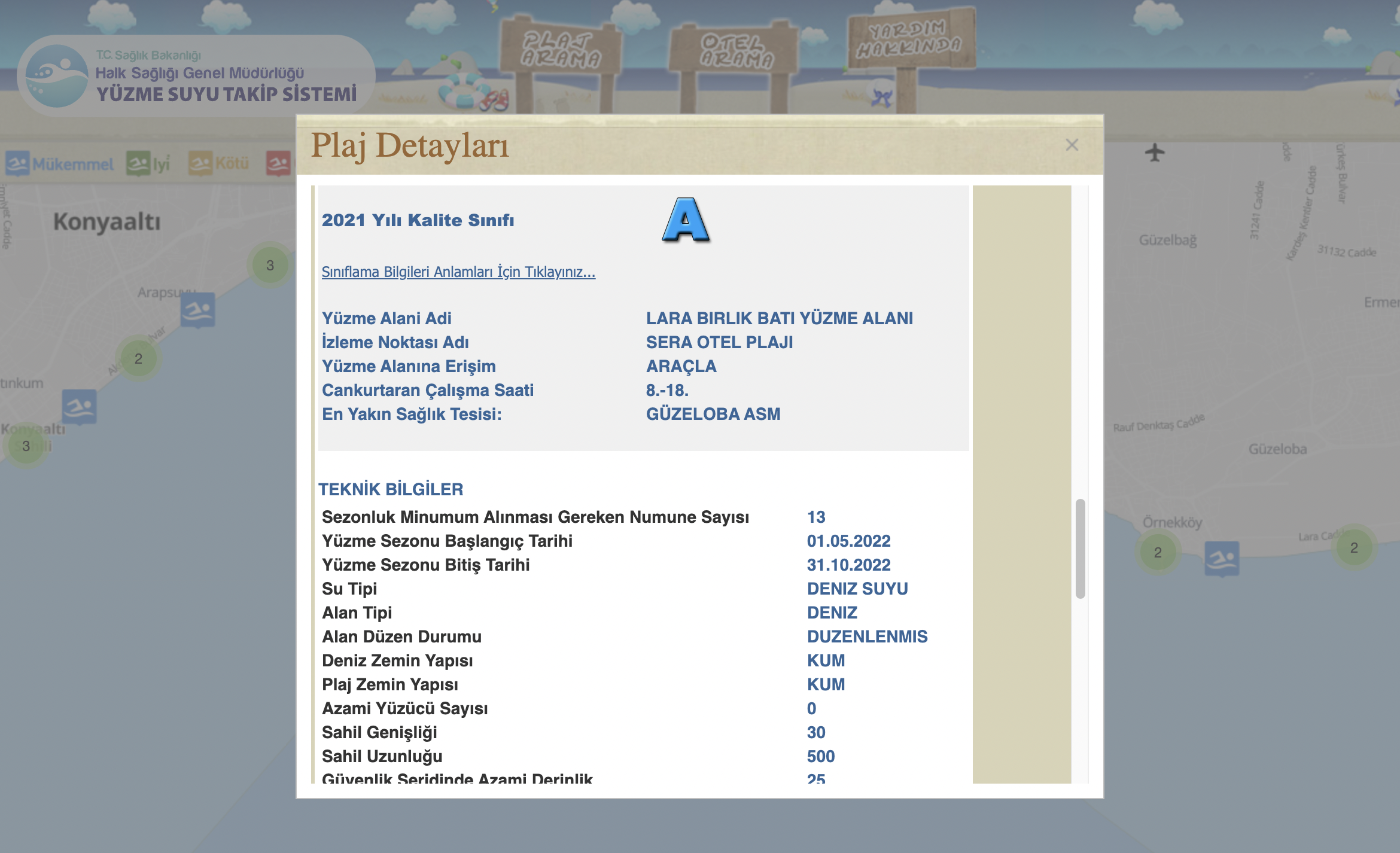 Antalya kıyılarında toplam 229 Mavi Bayrak verilen plaj bulunuyor. Bunun 16’sının işletmesi ise doğrudan Antalya Büyükşehir Belediyesi tarafından işletiliyor. Türkiye Çevre Eğitim Vakfı TÜRÇEV’in ücret karşılığında verdiği Mavi Bayrak sertifikası, kamuoyunda güvenle denize girilebilecek alan algısı yaratıyor. Ancak adında ‘çevre’ olsa da TÜRÇEV’in daha çok turizm cazibesini artırmaya yönelik bir kuruluş görüntüsü vermesi Antalya örneğinde olduğu gibi halk sağlığını da tehlikeye sokan durumlar yaratıyor.