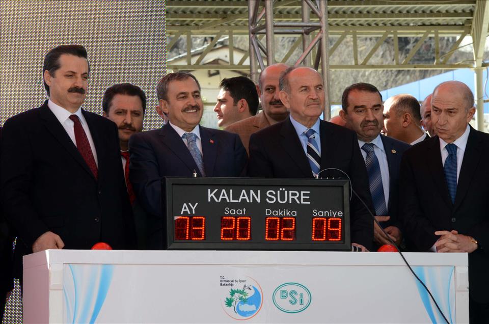 Yusufeli Barajı’nın temel atma töreninde projenin bitirilmesi istenilen tarihe doğru geriye sayan bir de dijital sayaç konuldu: Kalan süre 73 ay, 20 saat, 02 dakika, 57 saniye!