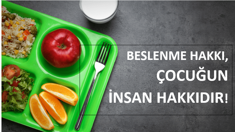 “Yeterli, dengeli ve sağlıklı beslenme hakkı, temel bir insan/çocuk hakkıdır. Çocukların bu hakkı, uluslararası ve ulusal düzenlemelerle koruma altına alınmıştır. Örneğin Çocuk Hakları Bildirgesi çocuklara yeterli beslenme sağlanması gerektiğini (ilke 4) söyler. Bununla birlikte çocukların beslenme hakkından ve yetersiz beslenmeye karşı mücadele edilmesinden (madde 24) söz eden BM Çocuk Haklarına Dair Sözleşmenin 27. maddesine göre ‘taraf devletler her çocuğun bedensel, zihinsel, ruhsal, ahlâksal ve toplumsal gelişmesini sağlayacak yeterli bir hayat seviyesine hakkı olduğunu kabul ederler’ ve taraf devletler, ‘ulusal durumlarına göre ve olanakları ölçüsünde, ana-babaya ve çocuğun bakımını üstlenen diğer kişilere, çocuğun bu hakkının uygulanmasında yardımcı olmak amacıyla gerekli önlemleri alır ve gereksinim olduğu takdirde özellikle beslenme, giyim ve barınma konularında maddi yardım ve destek programları uygularlar.’