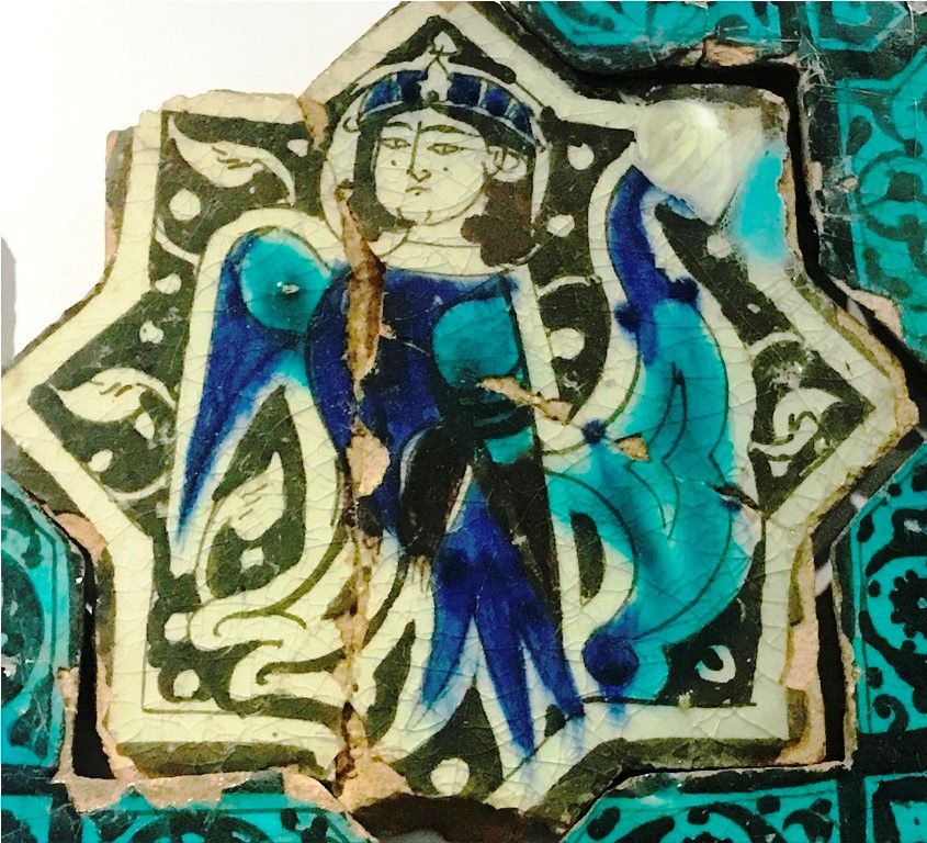 (Selçuklu çini sanatından bir örnek. 13. Yüzyıl, Kubadabad Sarayı buluntuları arasında. Konya Karatay Çini Eserler Müzesi.)