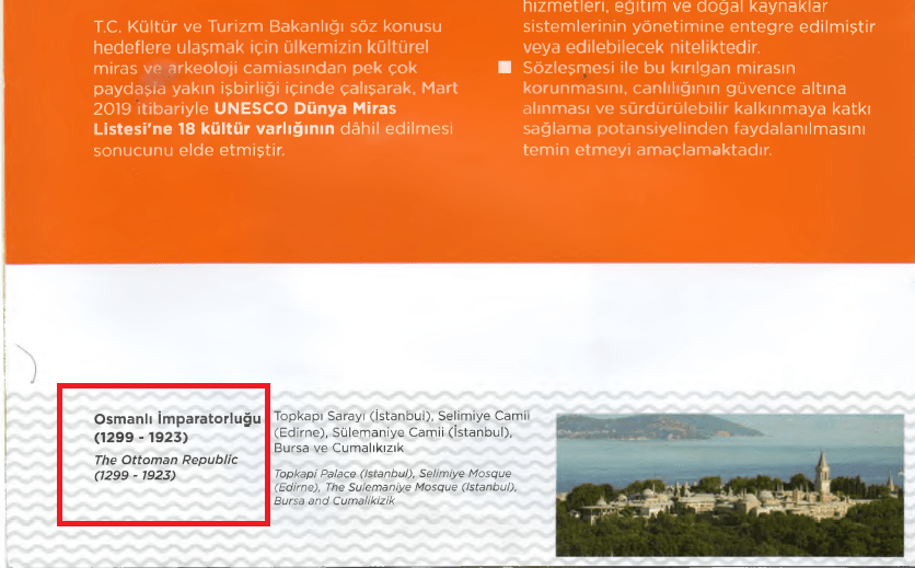 AKP’nin hazırladığı kanun teklifi ile vakfa dönüştürülmesi planlanan Arkeoloji ve Kültürel Miras Enstitüsü’nün 2019’da yayımladığı kitapçıkta, Osmanlı İmparatorluğu Osmanlı Cumhuriyeti olarak anılırken Nemrut Dağı Denizli’de, Ani harabeleri ise Van’da gösteriliyor…