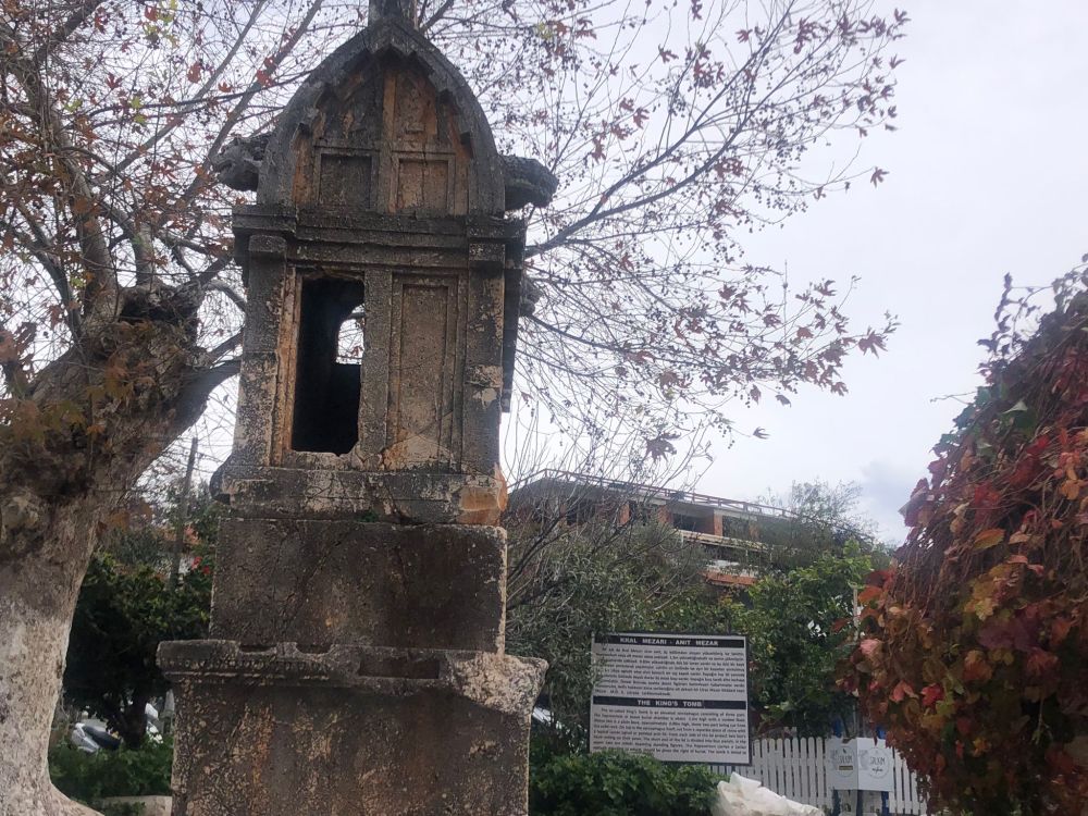 (Uzunçarşı Sokağındaki tarihi anıt mezar ve arkada, sağda yükselen inşaattan bir görünüm.)