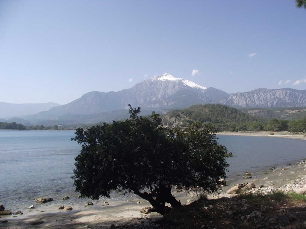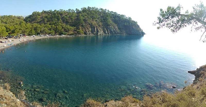 (Phaselis’in Batı limanı kısmında yer alan kumsaldan bir görünüm. Bu kumsalın solundaki bölge Bostanlı Koyu)