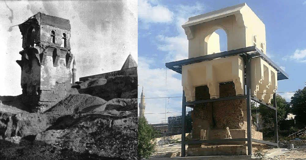 (2018’de tamamlanan restorasyon projesiyle tarihi yapıdan günümüze ulaşan son kalıntı soldaki görünümü almış, kent ve ülke kamuoyunda tepkiyle karşılanmıştı.)