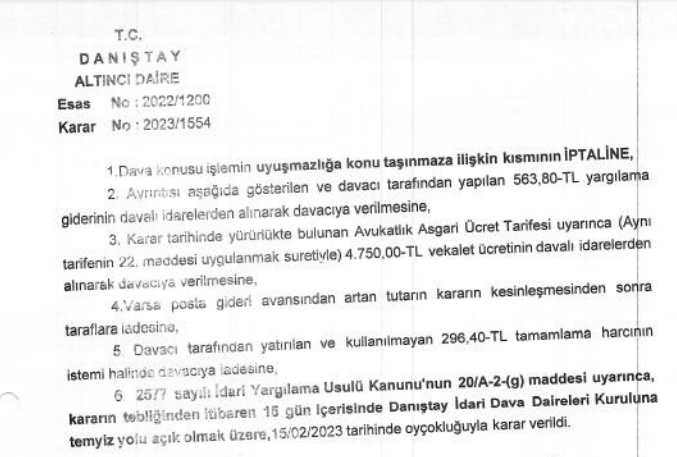 DANIŞTAY CUMHURBAŞKANI KARARINI HUKUKA AYKIRI BULDU