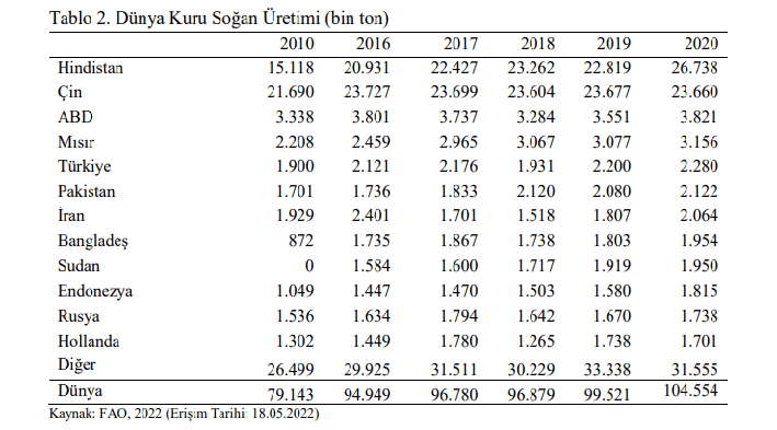 TÜRKİYE SOĞAN ÜRETİMİNDE DÜNYADA 5. VERİMLİLİKTE 36. SIRADA
