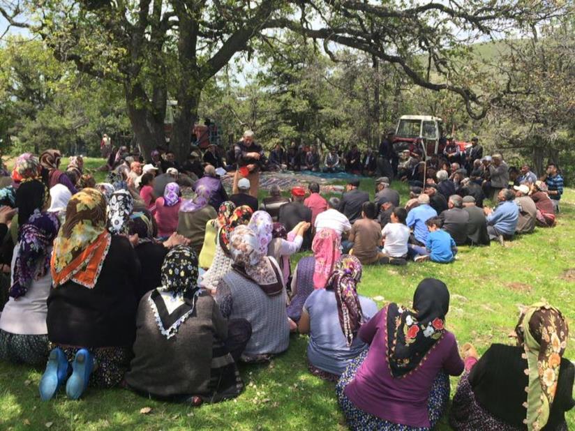 (Günçalı köyündeki Çal Baba, yöre halkı için kutsal kabul edilen önemli bir inanç merkezi olarak biliniyor. Fotoğraf, Mayıs 2016’da bir yağmur duasını yansıtıyor. Günçalı Derneği’nden alınmıştır.)