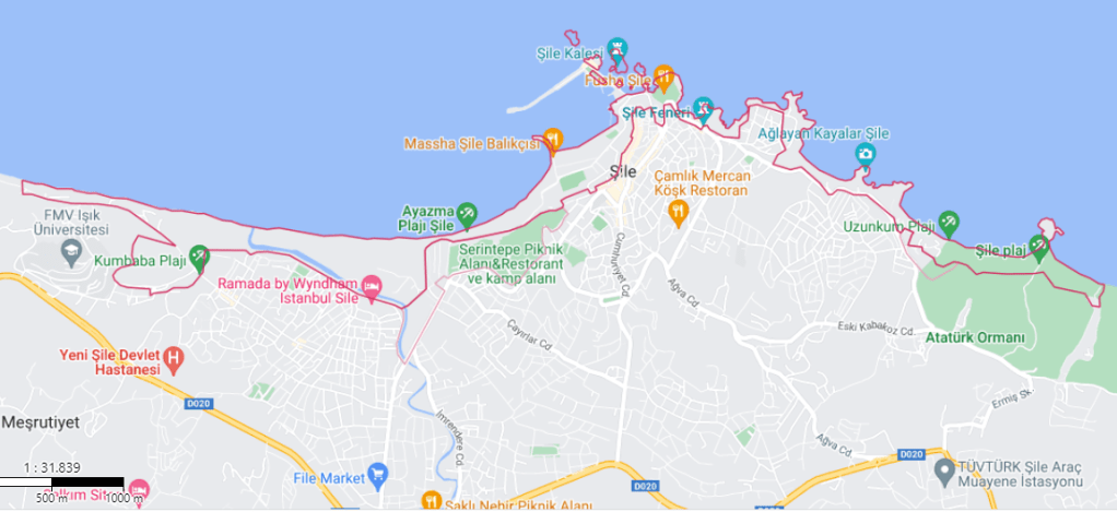 (Şile kumulları 1. derece doğal sit alanı olarak koruma altında bulunuyor, kırmızı çizgi içindeki bölgeler)