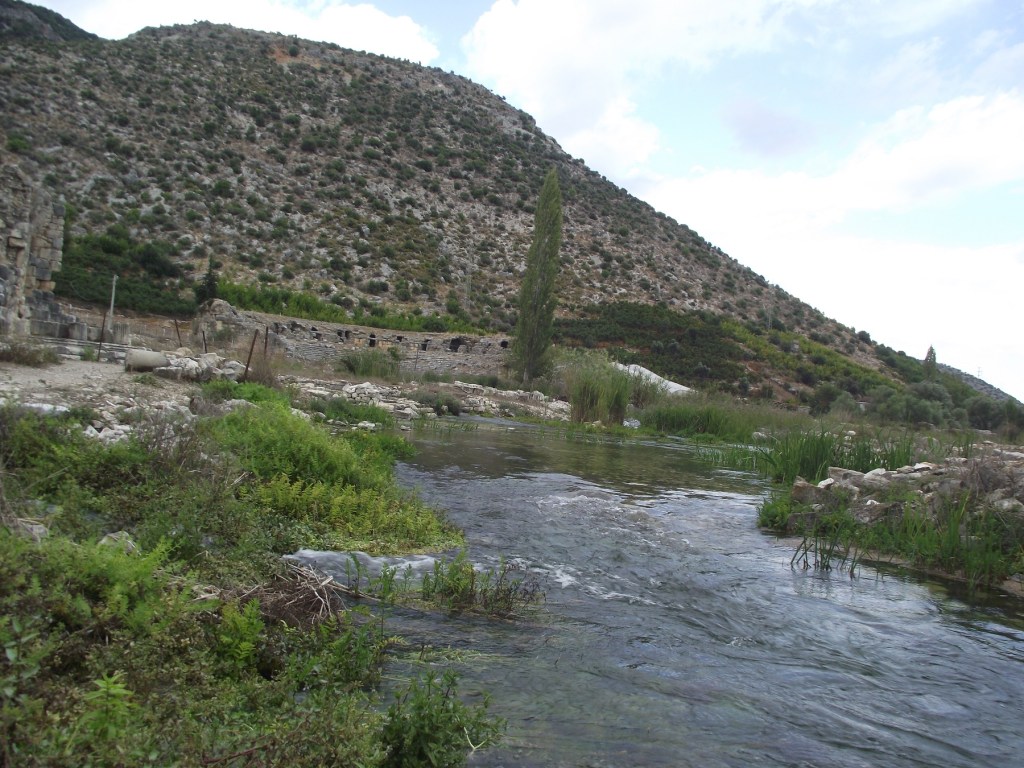 (Finike’deki Lmyra antik kentinin bir zamanlar ana caddesi olan bölgede çıkan su kaynağı tarihi dokuyu su tereleri ve kazayakları için yaşam alanı haline dönüştürmüş…)