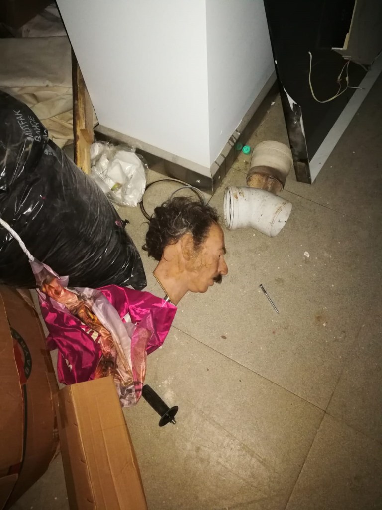 (Yönetmen Behlül Dal’ın müzede sergilenen heykelinin baş kısmı kaldırıldığı depoda yerlerde pislik içinde böyle görüntülenmişti. Söz konusu heykelin bir süre sonra bir otomobil direksiyonunda hırsızlara karşı korkuluk olarak kullanıldığı görüldü.)