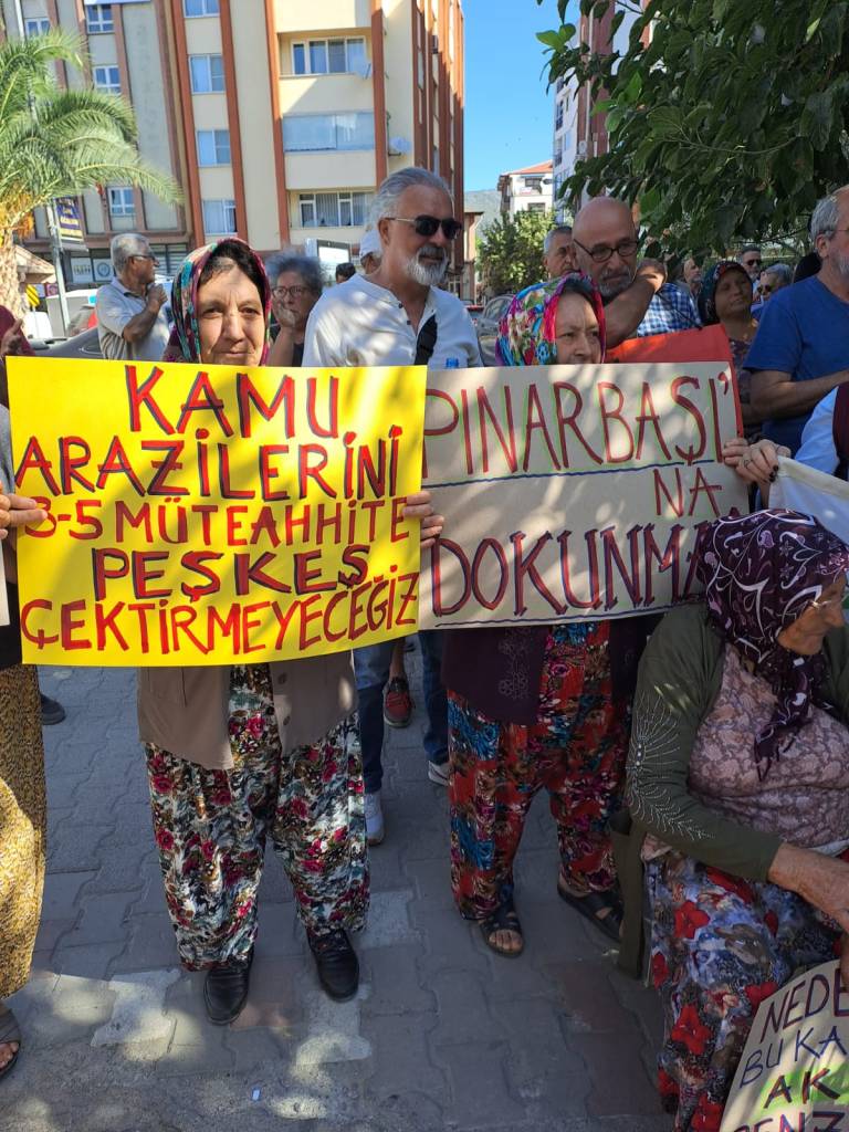 Pınarbaşı Köyü Muhtarı Serap Ergül, burada yaptığı basın açıklamasında, Balıkesir’in tüm ilçelerinde bulunan kamuya ait alanlar ile ortak varlıkların sürekli satılarak imara açıldığına dikkat çekerek, leblebi-çerez dağıtır gibi inşaat ruhsatı dağıtıldığını dile getirdi.