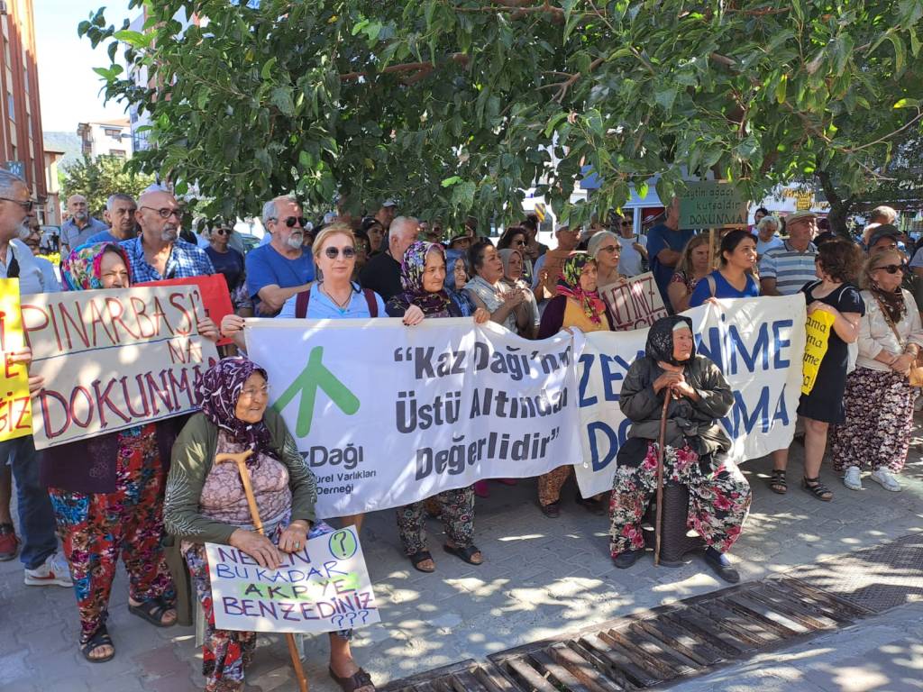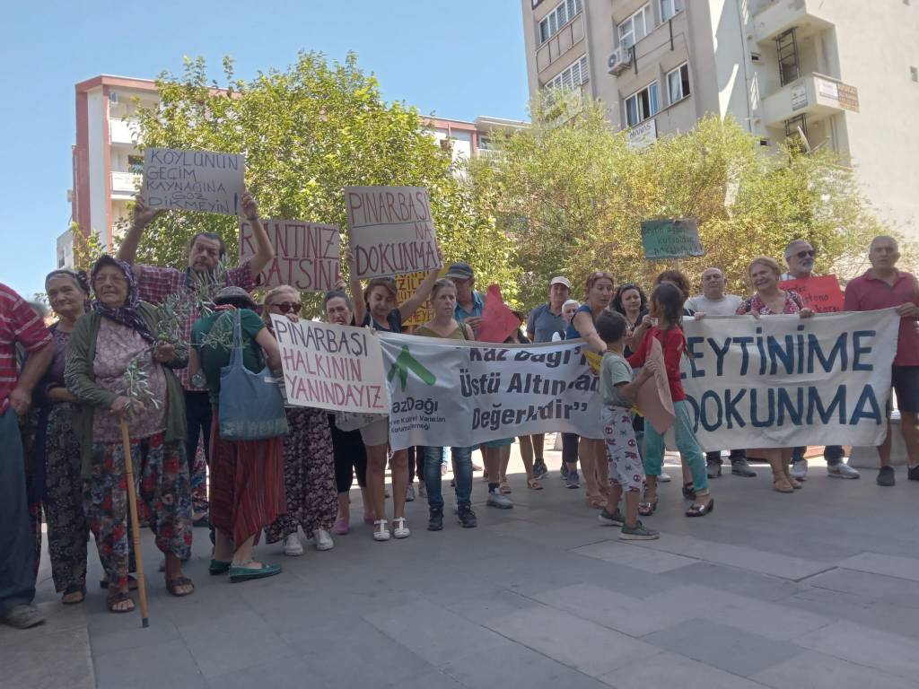 Edremit Belediye Meclisi’nin 16 Ağustos’ta aldığı karar ile zeytinlik vasıflı olan Pınarbaşı Köyü sınırlarındaki 141 ada 2, 4, 5, 6, 7, 8, 9, 10, 11 No’lu parsellerin konut yapılması için satılması gündeme geldi. 29 Ağustos’ta yapılacağı duyurulan ihale öncesinde dün Edremit Belediyesi önünde eylem yapan Pınarbaşı köylüleri ortak bir basın açıklaması yaparak kararın iptalini istedi. Pınarbaşı köylülerinin eylemine, Kazdağı Doğal ve Kültürel Varlıkları Koruma Derneği ile çeşitli siyasi partilerin temsilcileri de destek verdi.