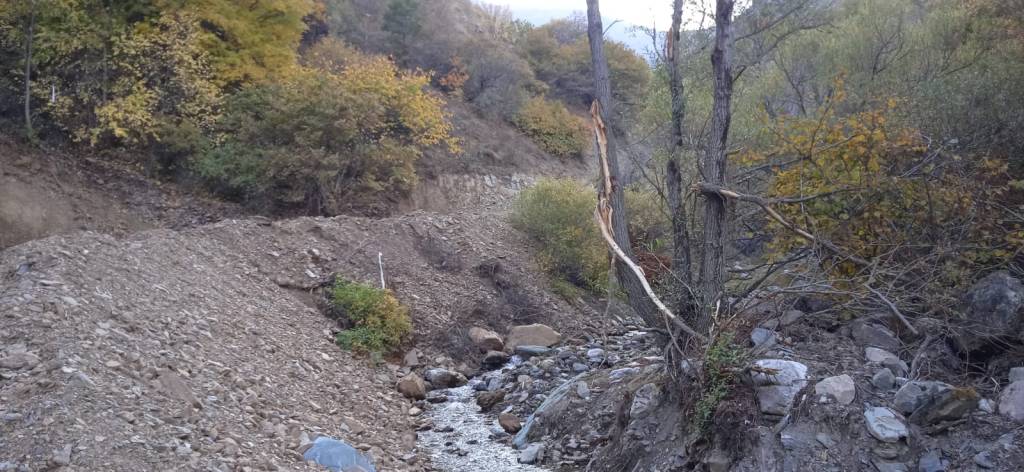 (Maden arama çalışması için doldurularak üzerinden yol geçirilen dere yatağı)