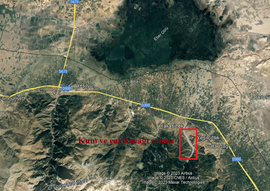 Söz konusu kum ve çakıl ocağı için 4 Eylül 2023 tarihinde 5 yıl süreyle ruhsat verildiği kaydedilen dava dilekçesinde şöyle denildi: “Kum ve çakıl ocağı işletme ruhsatı, detaylı bir inceleme ve araştırma yapılmaksızın, ÇED’e tabi olduğu halde ÇED süreci işletilmeksizin, aynı zamanda akifer olan dere yatağının üstündeki 9,86 hektarlık alanda verilmiş olup; geçmişte taşkın ve sellere maruz kalan, hatta bu nedenle 1968 yılında yeri değiştirilen köylerden biri olan Doğancık Köyü başta olmak üzere bölge halkının canına, malına, tarım ve hayvancılık faaliyetlerine zarar verecek; aynı zamanda tescilli sulak alanlardan biri olan, kurumaya yüz tutmuş Eber Gölü’nün kuruma sürecini hızlandıracak nitelikte; bilime, hukuka ve kamu yararına aykırı, öngörüsüz bir işleme dayalıdır.”