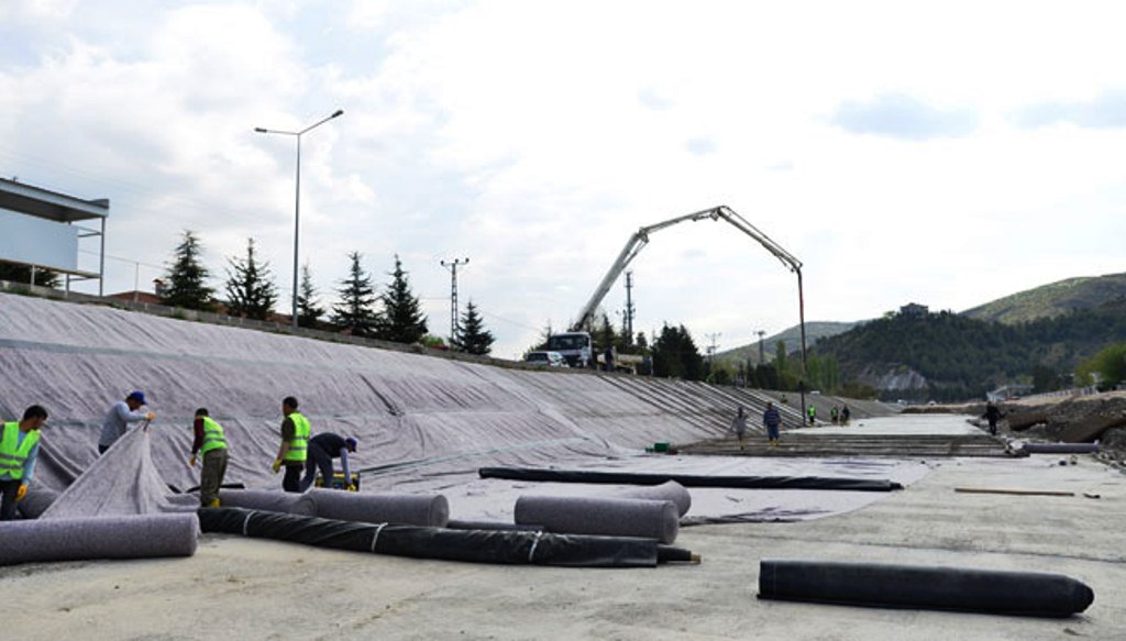 (Tokat Belediyesi tarafından il merkezinde Yeşilırmak üzerinde uygulanan Kanal Tokat Projesi’nin inşası sırasından bir görüntü. Nehrin tabanına su sızdırmaması için plastik malzeme kaplanıyor. Ayrıntılar için: https://www.odatv4.com/yazarlar/yusuf-yavuz/yesilirmaki-bitirecek-olay-124282)
