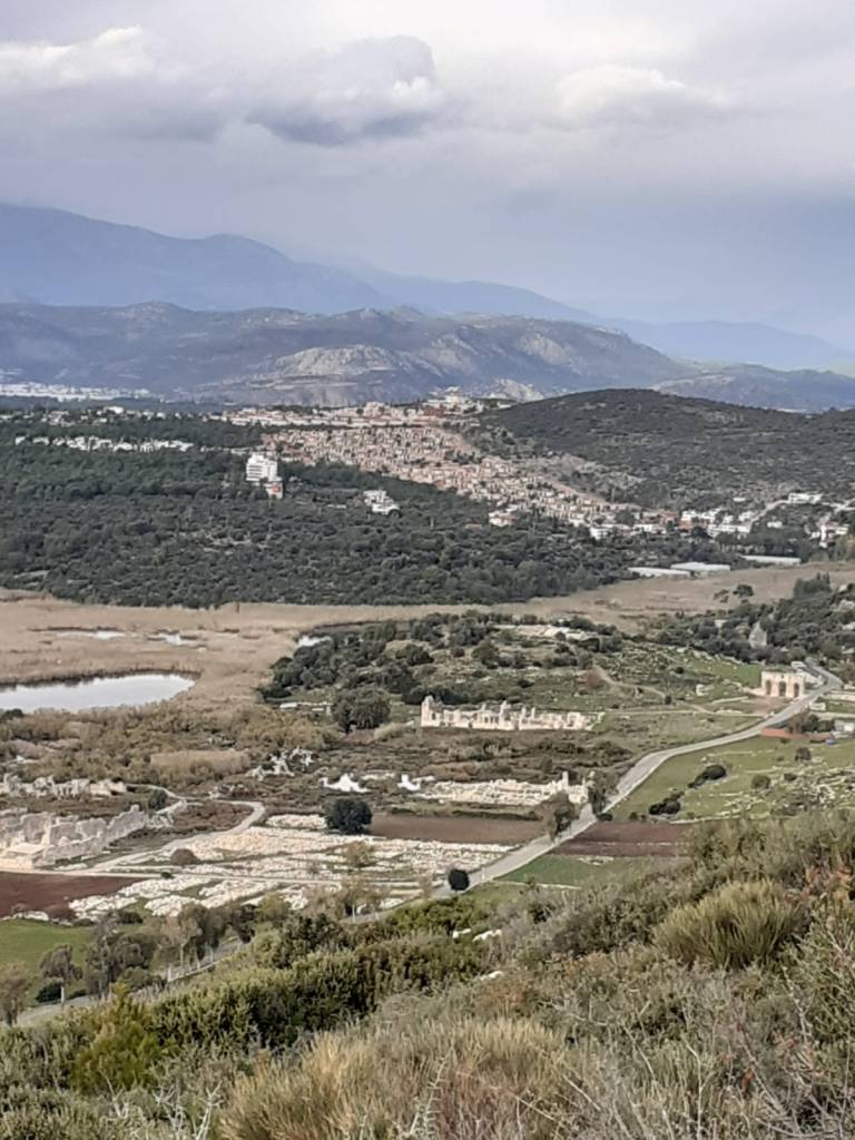 (Patara antik kenti ve arka planda kooperatif yapılarını da barındıran Gelemiş Mahallesi yerleşimi)