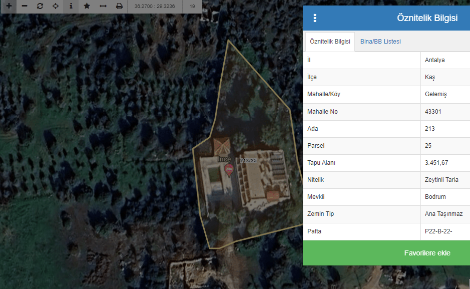(Bölgedeki binaların parsel kayıtlarında zeytinli tarla kaydı olması dikkat çekiyor)