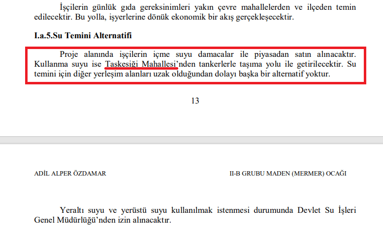 Kaş-Karadağ’da açılmak istenen mermer ocağı için günde 28 metreküp (28 ton) su kullanılacağı belirtiliyor. Ayda 840, bir yılda 10.080 ton su eder. Hem su üretim alanlarını kesip yok edeceksiniz, hem de bu yıkımı taşıma suyla yapacaksınız. Üstelik bu yıkımı ‘uyduruk’ ÇED raporlarıyla önce bakanlıklara, ardından da kamuoyuna yutturacaksınız. Kaş’ın böyle bir köyü yok. En yakın Taşkesiği Korkuteli’de, diğeri Manavgat’ta. Taşkesiği’ndeki bir mermer ocağı projesinden kopyala yapıştır, bakanlık nasıl olsa okumuyor! Türkiye 2004 yılında değiştirilen maden yasası ile kendi coğrafyasının bütün avantajlarını yok ediyor. Suyu, ormanı, coğrafyayı yok eden ve bunu da tonu sadece 750 TL’lik taşı çıkarıp satmak uğruna yapan bir ülkede tarım ve hayvancılık biter, halk bir damla suya muhtaç kalır.