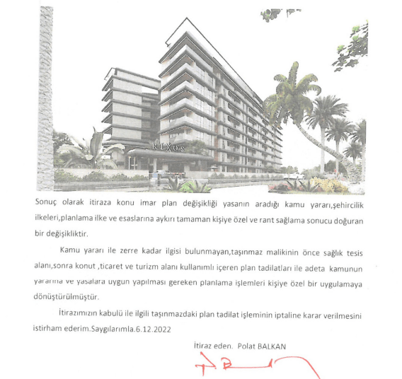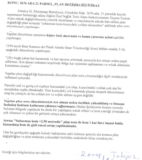 (Plan değişikliğine yapılan itirazlardan ikisi)