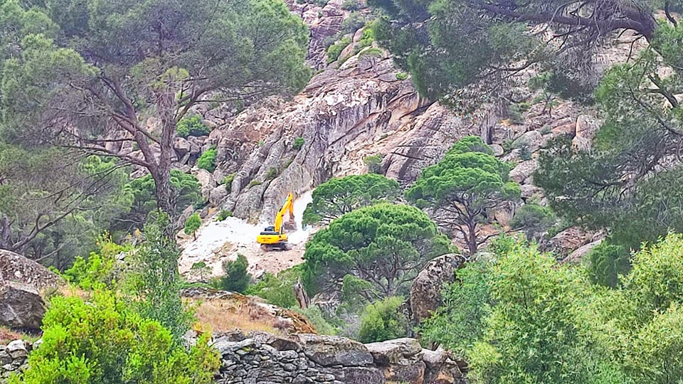 SİT ALANINDAN GEÇİRİLEN İŞ MAKİNELERİ KAYAÇLARI PARÇALADI
