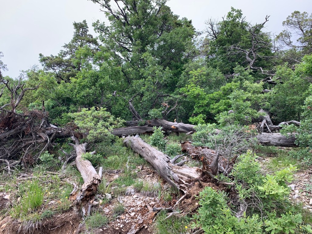(Çal Baba Ormanındaki ağaçlar hiç bir şekilde kesilmiyor. Kendiliğinden kuruyup ölen ağaçlar ise doğaya karışarak kurdun kuşun yuvası, besini oluyor. Köylüler ormandan tek bir kuru dal bile götürmüyor.)