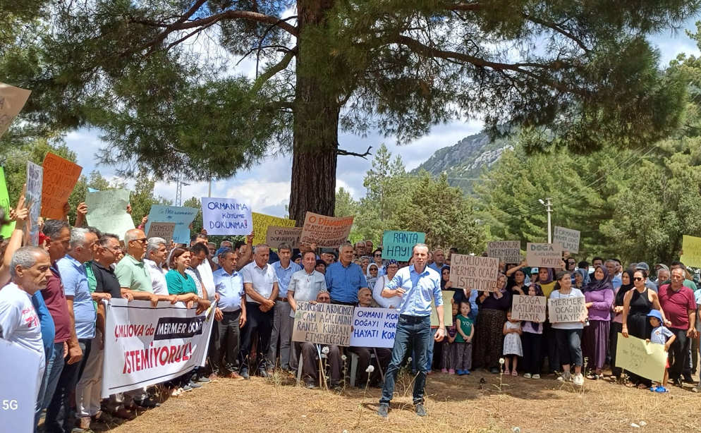 Antalya’nın Kaş ilçesine bağlı Çamlıova köyündeki sedir ormanında mermer ocağı açmak isteyen ancak iki yıl önce orman idaresinin olumsuz görüş vermesi üzerine ÇED süreci sonlandırılan firmanın ısrarı bu kez de halk engeline takıldı. Sedir ormanı ve sedir tohum meşceresi olan bölgede mermer ocağı açmak için ısrar eden özel şirket Çevre, Şehircilik ve İklim Değişikliği İl Müdürlüğü’ne yeniden ÇED başvurusunda bulunmuştu. Bugün saat 14.00’de yapılacağı duyurulan ÇED toplantısı öncesi Çamlıova köyünde bir araya gelen yöre halkı, mermer ocağı girişimine tepkisini gösterdi. Halkın tepkisi üzerine ÇED toplantısının yapılamadığı tutanakla kayıt altına alındı. Çamlıova köylüleri başta olmak üzere Kaş ilçe merkezi ve civar köylerden gelen vatandaşlar ayrıca tutanak hazırlayarak 250’ye yakın imza ile mermer ocağı istenmediğini kayıt altına aldı.