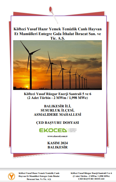 Çevre, Şehircilik ev İklim Değişikliği Bakanlığı, 18 Kasım’da ‘Köfteci Yusuf Hazır Yemek Temizlik Canlı Hayvan Et Mamulleri Entegre Gıda İthalat İhracat San. ve Tic. A.Ş.’ tarafından yapılması planlanan ‘Köfteci Yusuf Rüzgar Enerji Santrali’ projesiyle ilgili ÇED sürecinin başladığını duyurdu.