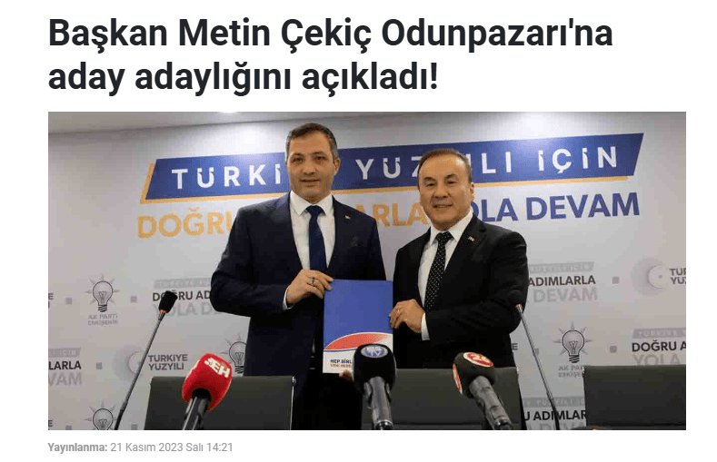 Mahkemenin iptal kararına rağmen Demre Çayı Vadisi’ndeki yıkım için ısrar eden madencilik şirketinin yönetim kurulu başkanı Metin Çekiç, 31 Mart 2024 tarihinde yapılan yerel seçimlerde Eskişehir Odunpazarı’nda AKP’nin belediye başkan aday adayları arasında yer almıştı.