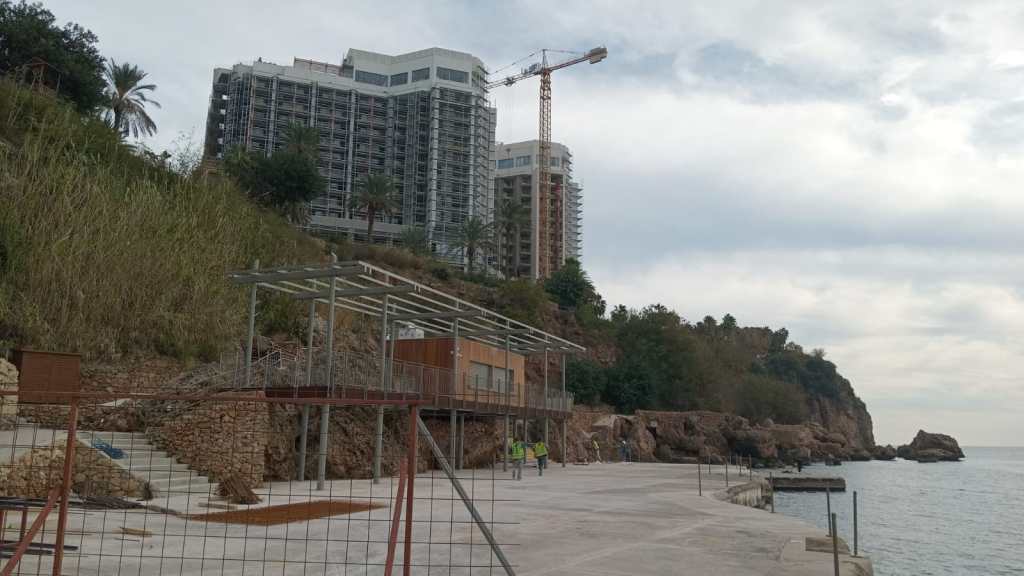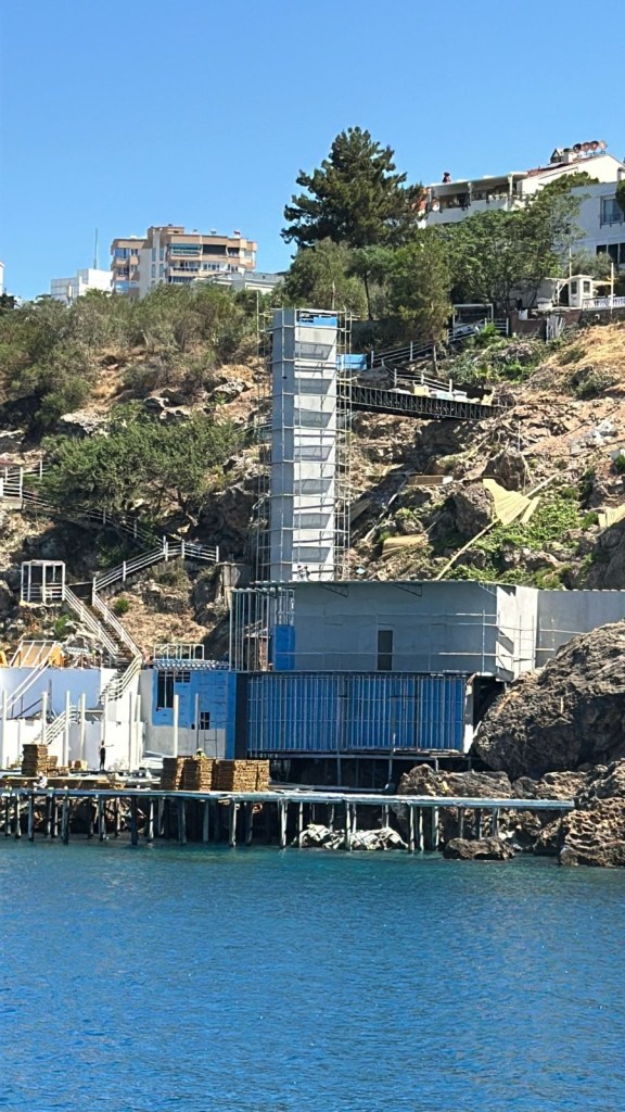 (Akra Barut Otel’in sahil kesiminde asansör inşaatı olduğu öne sürülen çalışmalar devam ediyor.)