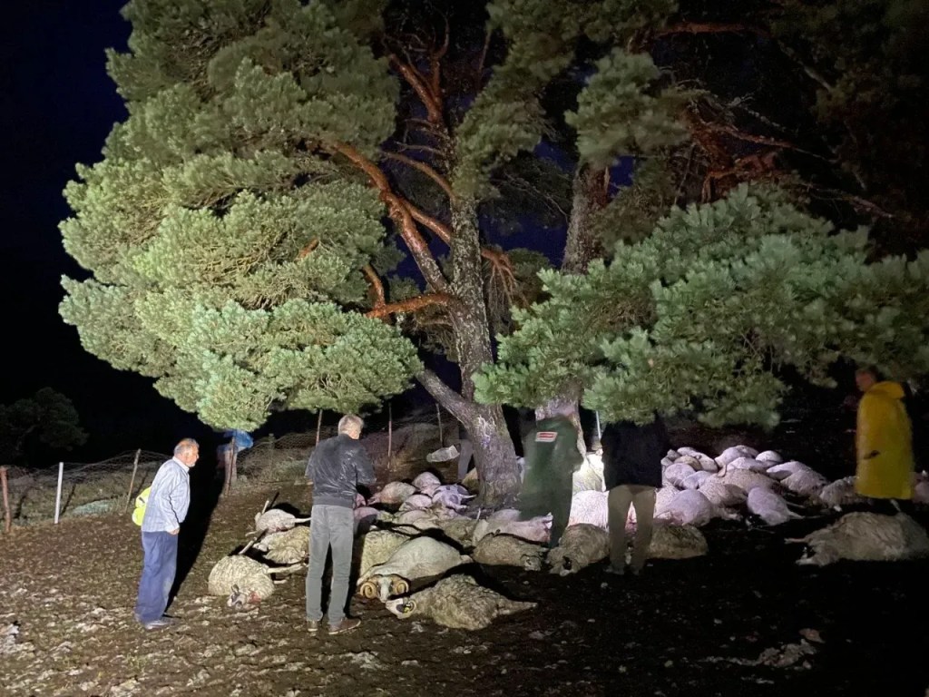 (Amasya’da yağışla birlikte yıldırım düşmesi sonucu 76 koyun telef olmuştu. Kaynak: Objektif Amasya)