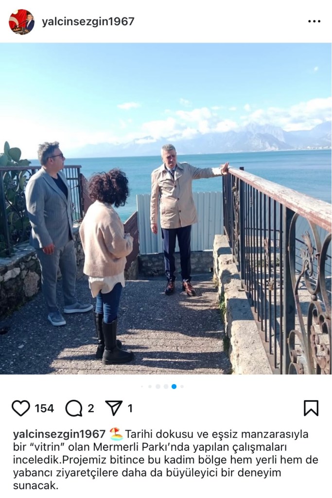 Antalya Valiliği Yatırım İzleme ve Koordinasyon Başkanlığı (YİKOB) bünyesinde kurulan AYDAŞ şirketi üzerinden işletileceği öğrenilen Mermerli Plajı ve yeme içme ünitelerinde tadilat ve çevre düzenleme çalışması başlatıldı. Sit alanı niteliğindeki tarihi bölgede yer alan plaj, Çevre, Şehircilik ve İklim Değişikliği Bakanlığı tarafından Antalya Valiliği’ne tahsis edilmişti. Antalya Vali Yardımcısı ve YİKOB Başkanı Yalçın Sezgin’in, Mermerli Plajı ve çevresindeki çalışmaları yerinde inceledikten sonra sosyal medyada “İşimiz gücümüz Antalya” diye paylaşımda bulunması, yerel seçimlerde Muhittin Böcek ve CHP’nin ilçelerdeki belediye başkan adaylarının kullandığı seçim sloganını akıllara getirdi.