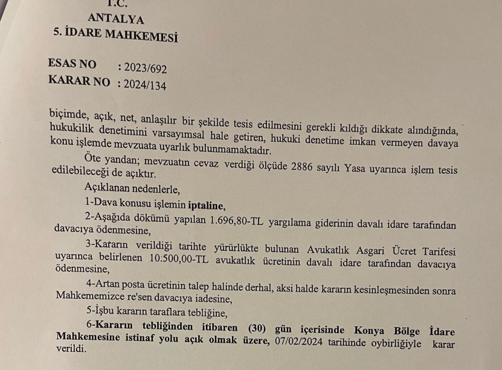 (Manavgat Kaymakamlığı’nın 2023’te aldığı tahliye kararını Antalya İdare Mahkemesi iptal etmişti)