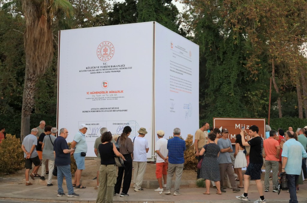 Müze Çalışma Grubu ile İnşaat Mühendisleri Odası Antalya Şubesi’nin talep ettiği deprem raporunu vermeyen Bakanlık, inşaat alanını çevreleyen panoların üzerine raporun afişe dönüştürülmüş halini yapıştırdı. Bakanlığın bu tavrı tepkiyle karşılanırken, panolara yapıştırılan belgelerde tarih bulunmadığı eleştirisine neden oldu. Antalya Müzesini çevreleyen panolara yapıştırılan raporda, İnşaat Yük. Mühendisi Yüksel Kaya ve Gazi Üniversitesi Mühendislik Fakültesi’nden Prof. Dr. Sabahattin Aykaç’ın imzalarının olduğu görülüyor.